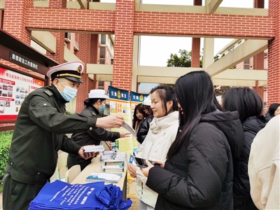 日前,交通执法巴南区大队的志愿者们走进重庆教育管理学校开展“拒乘黑车 平安返家”宣传活动,以近期查获的典型案例生动讲述了乘坐“黑车”的危害,提醒同学们寒假返家及春节出行一定要选择正规、合法的交通工具。当天,交通执法志愿者向该校师生发放了400余份“拒乘黑车”宣传册、宣传本及反诈骗宣传资料,以及100余个“拒乘黑车”宣传袋。 记者 舒楚寒 摄 |