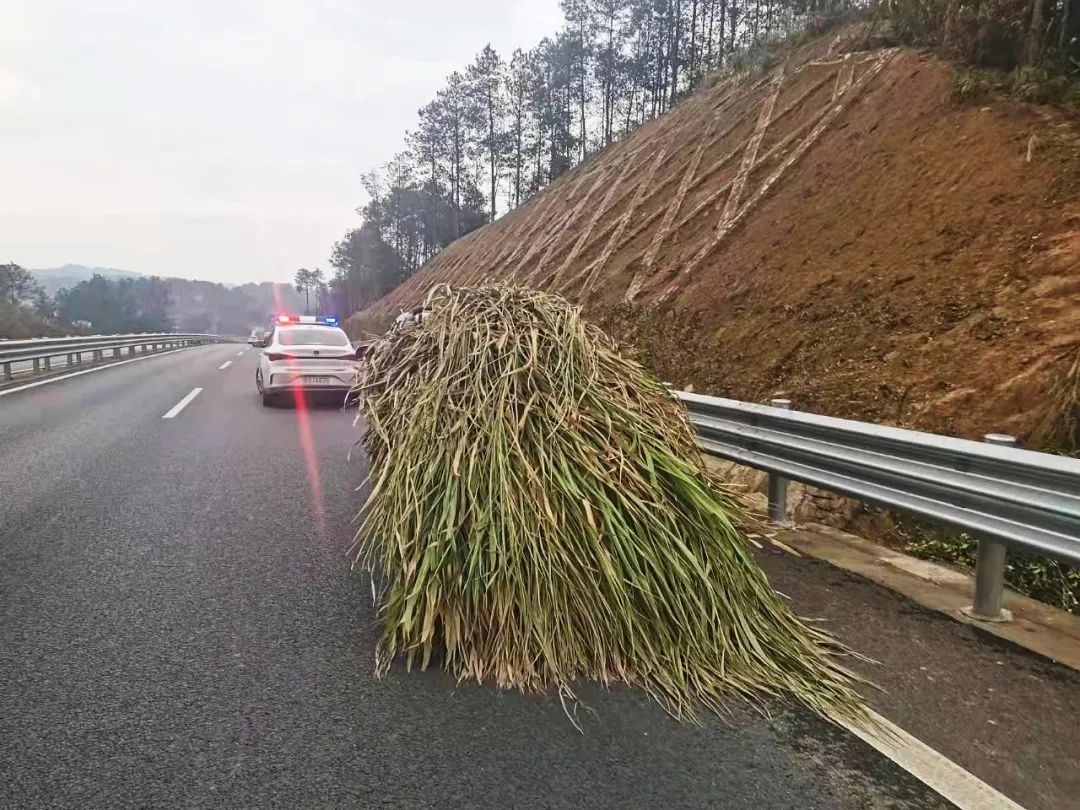 本网讯(通讯员 彭洁)平安出行是每一位驾驶员共同的愿望,超长、超高等交通违法行为往往会给驾驶带来安全隐患。近日,涪陵区公安局交巡警支队马武公巡大队在巡逻中,查获了一起皮卡车载物超过规定长度的违法行为。 当天下午,马武公巡大队民警在102省道龙马路同乐路段巡逻时,发现一堆“茅草”在公路上朝龙潭方向快速移动,见此情景,民警立刻驱车在前方设置卡点,将移动的"草垛"拦截下来。 原来,移动的“草垛”是一辆货厢堆满了茅草的皮卡车,由于草太长,一直从货厢延伸至地面,从皮卡车后面看过去,俨然就是一个草垛。茅草将皮卡车的号牌、尾灯、反光标识全部遮挡,存在严重安全隐患。