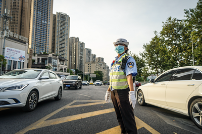 14时30分,支队机动大队民警陈方东在观音桥建新北路阳光城路口路段进行交通疏导,虽然汗水不断,警服湿透,可他指挥的动作依旧一丝不苟。 15时许,机动大队民警在巡逻中发现观音桥下穿道出现异常堵塞,刘宝章骑行穿过车流,第一时间赶至事故现场,发现是一小轿车在前往维修店途中突发故障,车辆熄火。民警及时通知拖车将事故车辆拖移,并进行交通疏导。