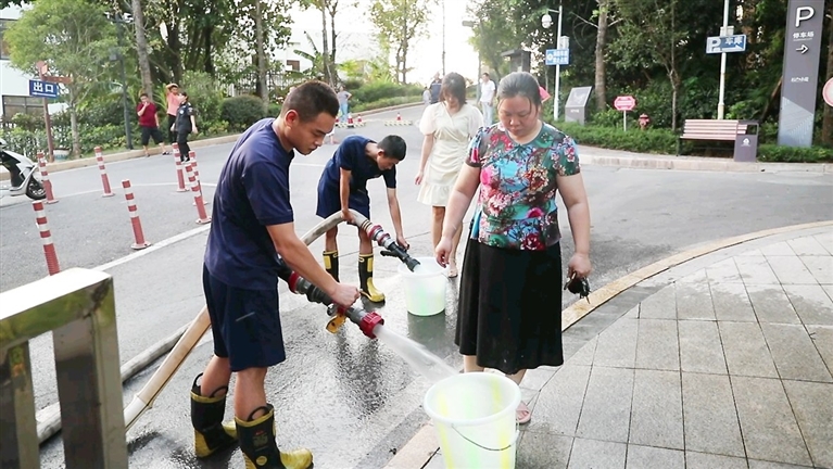 高温干旱缺水 消防为民解渴