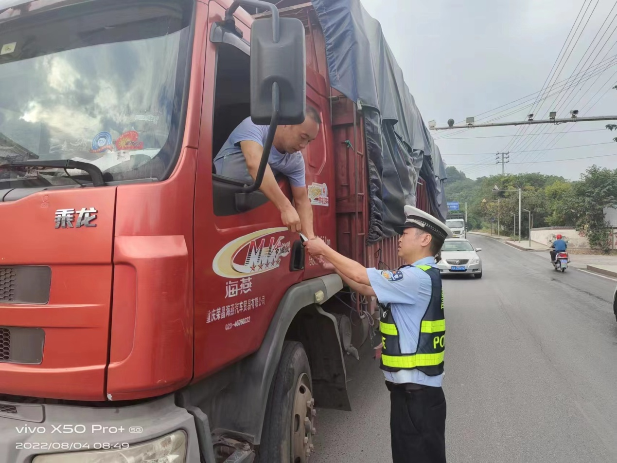 本网讯(通讯员 刘爽)为全力维护夏季道路交通安全,推动重点运输企业从业驾驶人安全风险隐患排查整治百日行动,近日,荣昌区公安局交巡警支队持续深化大货车违法行为整治行动,从严查处一批易肇事易肇祸违法行为,有效治理一批人、车、路、企交通安全隐患。