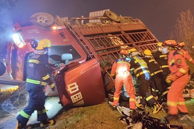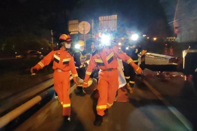11月4日22时07分,渝北区机场路泸渝高速公路出口古木峰立交方向发生交通事故,有人员被困,重庆市消防救援总队特勤支队黄山大道站接警后立即出动3车18人前往现场救援。