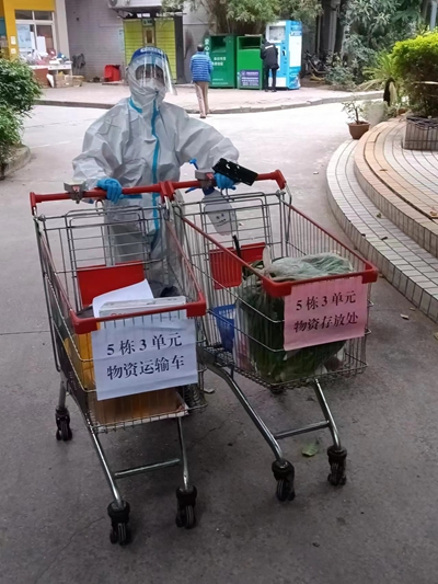 ![]() 汤传敏是重庆市南岸区源点社会工作服务中心的主任,一名心理咨询师,同时也是高新区白市驿镇的一名党员志愿者,党龄已有19年,义务从事社区志愿服务工作6年。 白天她是“大白”“跑腿员” “汤老师,麻烦帮我取个快递嘛,取件码是……” “要得。” “汤老师,我在网上买了菜,麻烦帮我拿一下,谢谢!” “马上给你送。” 这是重庆高新区白市驿镇某小区某单元楼业主群的一段对话。 11月13日晚,白市驿镇某小区被临时管控,该小区所属黄金社区紧缺志愿者。家住高新区的汤传敏得知这一情况后,立即联系社区报名担任志愿者,于14日到岗支援该小区疫情防控工作。白天,汤传敏身穿防护服,为隔离居民送菜上门,帮忙取快递、倒垃圾,于是有了开头的那一幕。 “我之前在社区当过4年网格员,熟悉小区环境和居民,和他们也有感情,我来当志愿者,他们心里踏实。”汤传敏表示。此后她每天推着“购物车”,在小区来来回回“送货”。由于该小区是老旧小区,有些楼栋还没有安装电梯,汤传敏就穿着厚重的防护服,爬上爬下,每天要走1万多步。 晚上她是“心理辅导师” 因该小区有风险区,汤传敏晚上不能回家,她就在小区门口住起了帐篷,睡“沙滩躺椅”,她干脆抄起“老本行”,为隔离居民开展心理疏导。 汤传敏是国家三级心理咨询师、全国青少年心理健康辅导员,她每天通过电脑、手机一对一视频或微信群互动,疏导几十人到几百人。“这本来也是我的专业,主要是想通过沟通减轻大家的焦虑,尤其是青少年,帮助他们渡过心理难关。”她表示。 隔离不隔爱,疫情挡不住温情。未被临时管控的小区居民也会主动给志愿者和社区工作人员熬姜汤,送牛奶、坚果、小吃,让这寒冷的初冬被邻里守望的温暖感化了。 除了汤传敏,还有无数默默无闻的志愿者正全力以赴奋战在疫情防控的第一线,用行动谱写着科学城的温暖。 通讯员 洪思思 记者 饶果 |