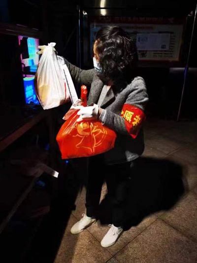 经过短暂的内心挣扎,涂润安抚好家人后选择留在单位,代同事值夜班,帮助综合办报表,调整勤务计划,安排值班人员,哪位同事需要临时顶岗,哪个岗位缺人手,他总是第一个补位上去,成为该大队名副其实的“补丁王”。 奋战一线的志愿者 近日,该大队51岁的舒南萍穿梭在小区的各个单元楼,提着大大小小装着生活物资的包装袋,满头大汗。和她同行的志愿者怕她身体吃不消让她休息一下,她却笑着说:“邻居们都在等着这些物资呢,我跑快一点,他们就能早点拿到物资安心居家。”于是又匆忙地投入到物资配送中。