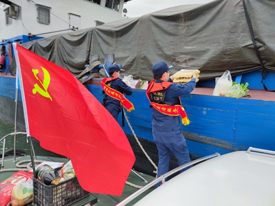 11月30日一早,执法人员组成“海燕”志愿者化身为“快递小哥”开展爱心接力。在运输物资前,执法人员通过线上查验了船员的健康状况,提前采取了相应防范措施,在做好自身防护措施的同时,三名执法人员从清点数量、打包、再到搬运,一气呵成。