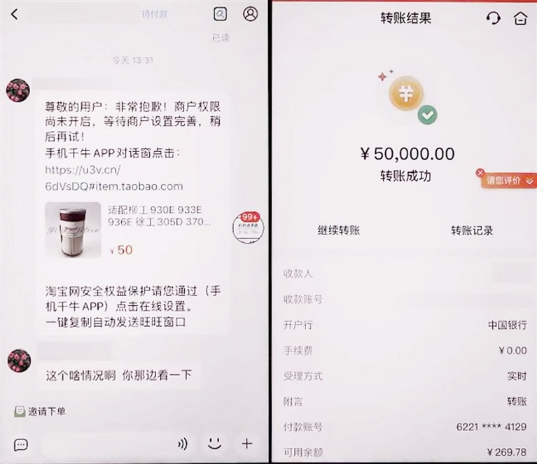 眼看着大买卖上门,许先生立马点击对方发送的链接,屏幕弹出了一个淘宝“客服”的对话框,“客服”告诉许先生,根据平台最新规定,因其没有及时升级花呗及信用卡的线上交易功能,导致买家支付失败,添加QQ号码即可完成升级。 许先生想着是“官方客服”提供的解决办法,应该不会有假,于是立马加了对方QQ好友。对方告诉许先生,转账5万元刷流水,即可完成升级,且承诺转款会原路返还。为了便于店铺经营,许先生便在对方的指导下将支付宝“网商贷”贷款的5万元转向了指定账户。随后,对方又以同样理由让其继续转账,许先生惊觉被骗,立马到白市驿派出所报警求助。 许先生懊恼地说:“现在想想,这根本就是个骗局,买家是骗子,发给我的链接就是一个钓鱼网站,根本不是真正的淘宝客服,所谓的升级服务只是骗我转账罢了。” 目前,警方已对相关账户进行止付冻结,案件正在进一步侦办中。 |