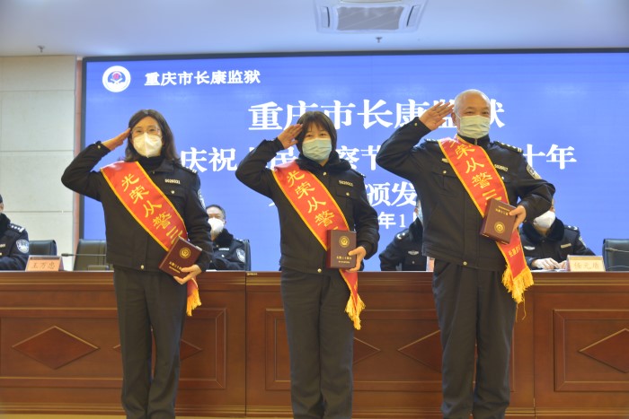 重温入警誓词 当天,长康监狱召开干部大会,组织重温入警誓词和从警三十年荣誉章颁发仪式,并以处置服刑人员哄监闹事应急处突演练为序幕,开启“警察节,我在岗”岗位竞赛活动,通过在机关行政岗比服务、比业务、比作风,在监管岗位比履职、比落实、比本领,在医疗岗位比医疗水平、比收治人数、比救治本领等,将庆祝活动与提升监狱工作质量融合起来。