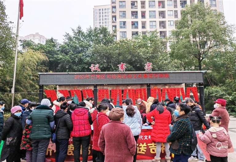 巴南区界石镇东城社区开展迎新春“春联送福 法润社区”法治文化基层行活动