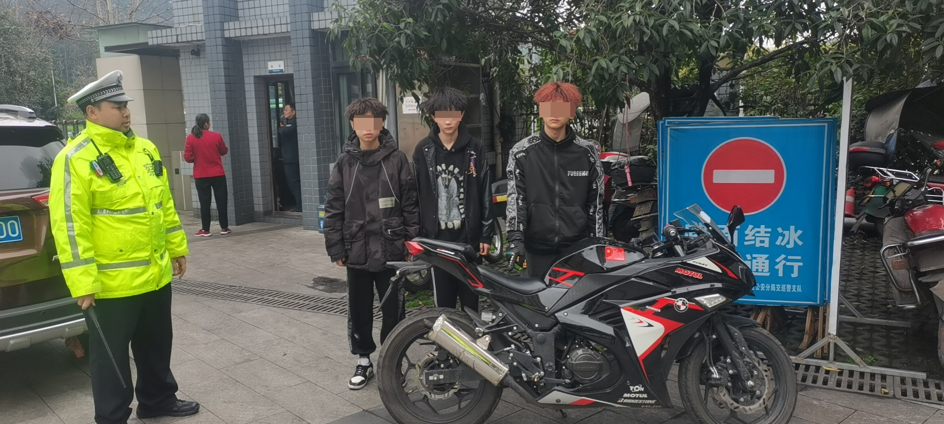 2月14日,民警发现3人驾驶的摩托车在G353有活动轨迹。下午14时30分许,民警在G353国道中石化加油站附近设卡将3人拦截。 经查,3人均未满16岁,且有盗窃前科,驾驶的摩托车为盗抢车辆,其中一人参与了2023年2月12日的入室盗窃。 目前,万盛交巡警支队民警已将3人移交万东派出所,被盗车辆已归还失主,失主李某对交巡警的工作表示了肯定和感谢。 |
