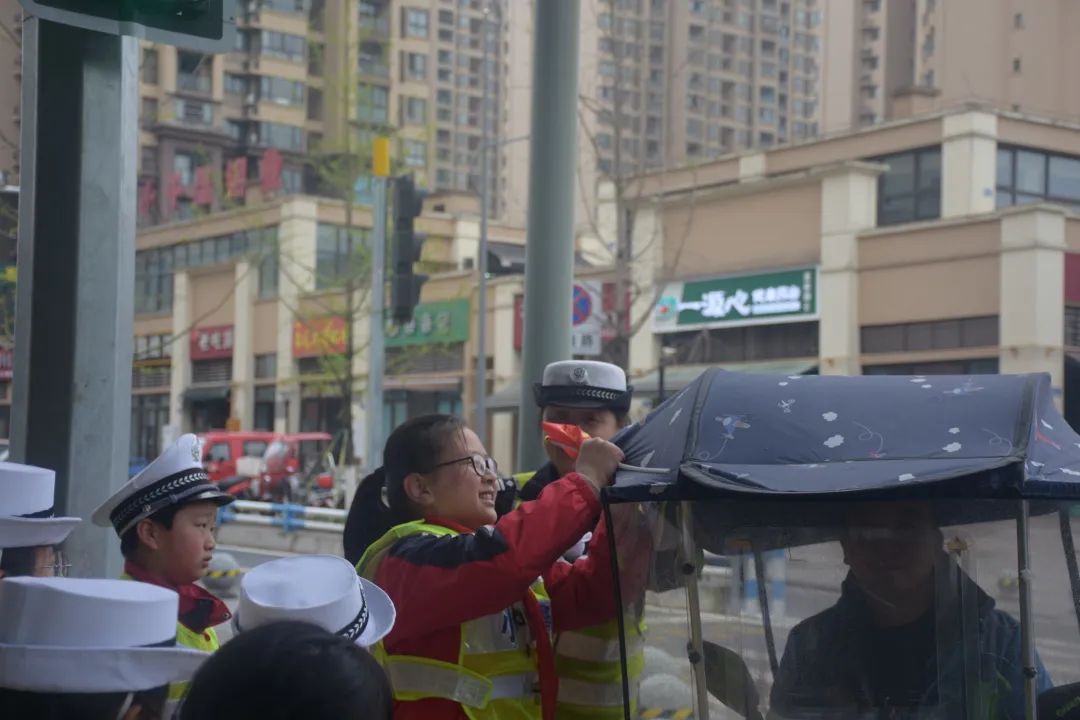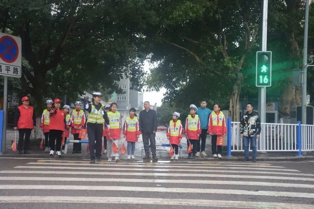 上午9时,经过“岗前培训”,“小交警”们在九龙坡区公安分局交巡警支队西彭大队民警的带领下,走上街头开展文明交通劝导志愿服务活动,劝导行人和非机动车驾驶人按照红绿灯指示有序通行,对不佩戴安全头盔、逆行、超员超载的驾乘人员及时阻止,“小交警”言语稚嫩,话语却很有力度,不文明出行的人员在意识到错误后也连连表示:“我做得还没有小朋友好,真是太惭愧了。” 志愿服务活动后,同学们激动地说:“今天文明上路执勤,体会到了交巡警叔叔工作的辛苦,今后我们将会自觉遵守交通规则,同时也带领爸爸妈妈做文明的交通参与者。”