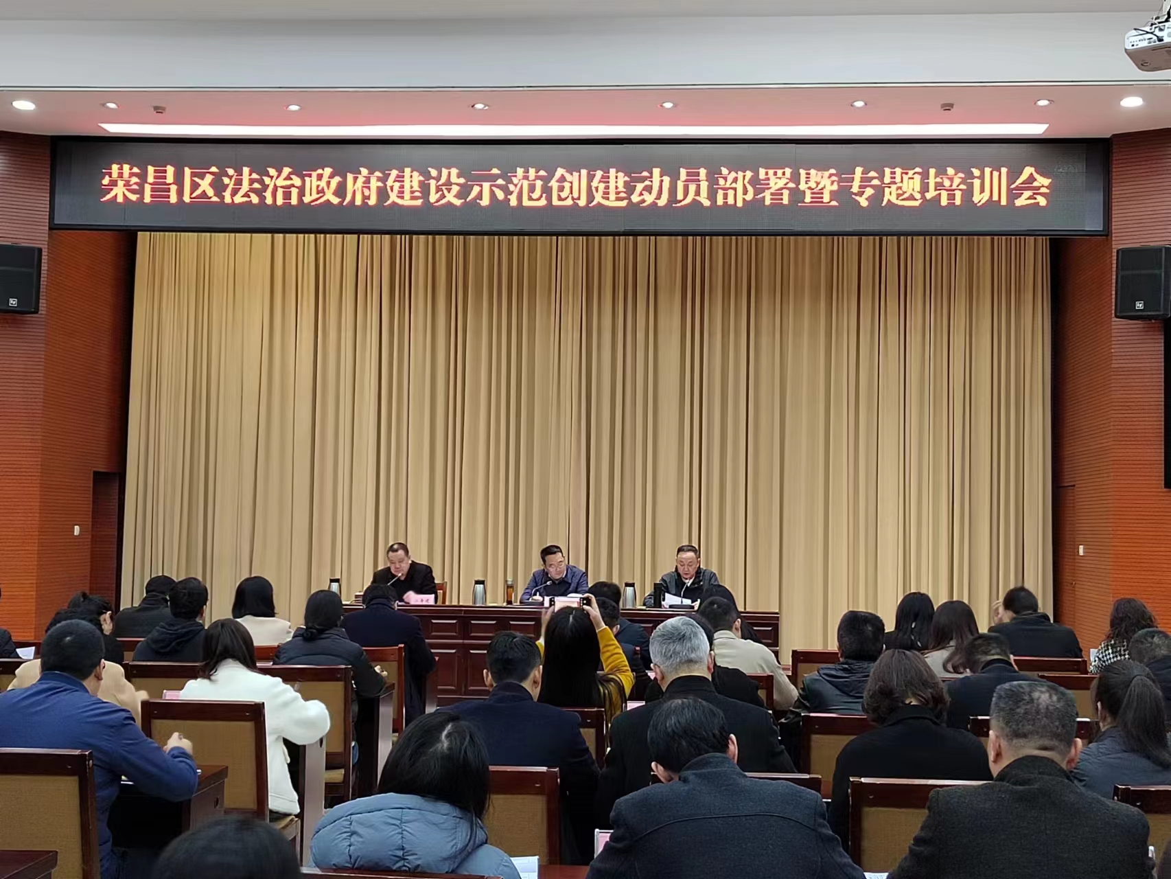 本网讯(记者 顾 勇)3月28日,荣昌区法治政府建设示范创建动员部署大会暨专题培训会召开。荣昌区委常委、政法委书记、区委依法治区办主任何逸出席会议并讲话,荣昌区政府副区长、区公安局局长、区委依法治区委执法协调小组组长唐列主持会议。