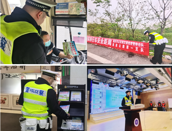 本网讯(通讯员 郭雪莲)为进一步提高辖区群众交通安全文明意识,创造安全畅通的道路通行环境,市公安局交巡警总队高速公路第一支队沙坪坝大队落实 “减量控大”工作要求,多举措开展“春季守护行动—高速请勿低速行驶 保持车辆间距”宣教活动,筑牢交通安全防护墙。 组织开展宣传活动 大队成立交通安全宣传小分队,每月深入辖区学校、企业、社区、单位、农村等地开展特色鲜明的交通安全宣传活动,宣传民警通过面对面宣讲、播放交通安全警示教育片、发放宣传资料、悬挂宣传横幅等方式向群众、学生、单位职工讲解交通安全宣传知识。