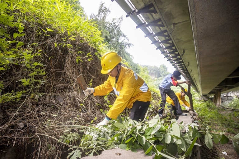 为确保汛期铁路运输畅通和旅客群众生命财产安全,5月24日,成都铁路公安局重庆公安处和成都铁路局集团有限公司涪陵工务段、客运段等单位联合开展防汛风险隐患排查整治工作,对管内线路进行全面安全检查,严密盯控防汛重点区段,全力以赴做好铁路夏季防汛工作。 记者 叶惠娟 摄 |