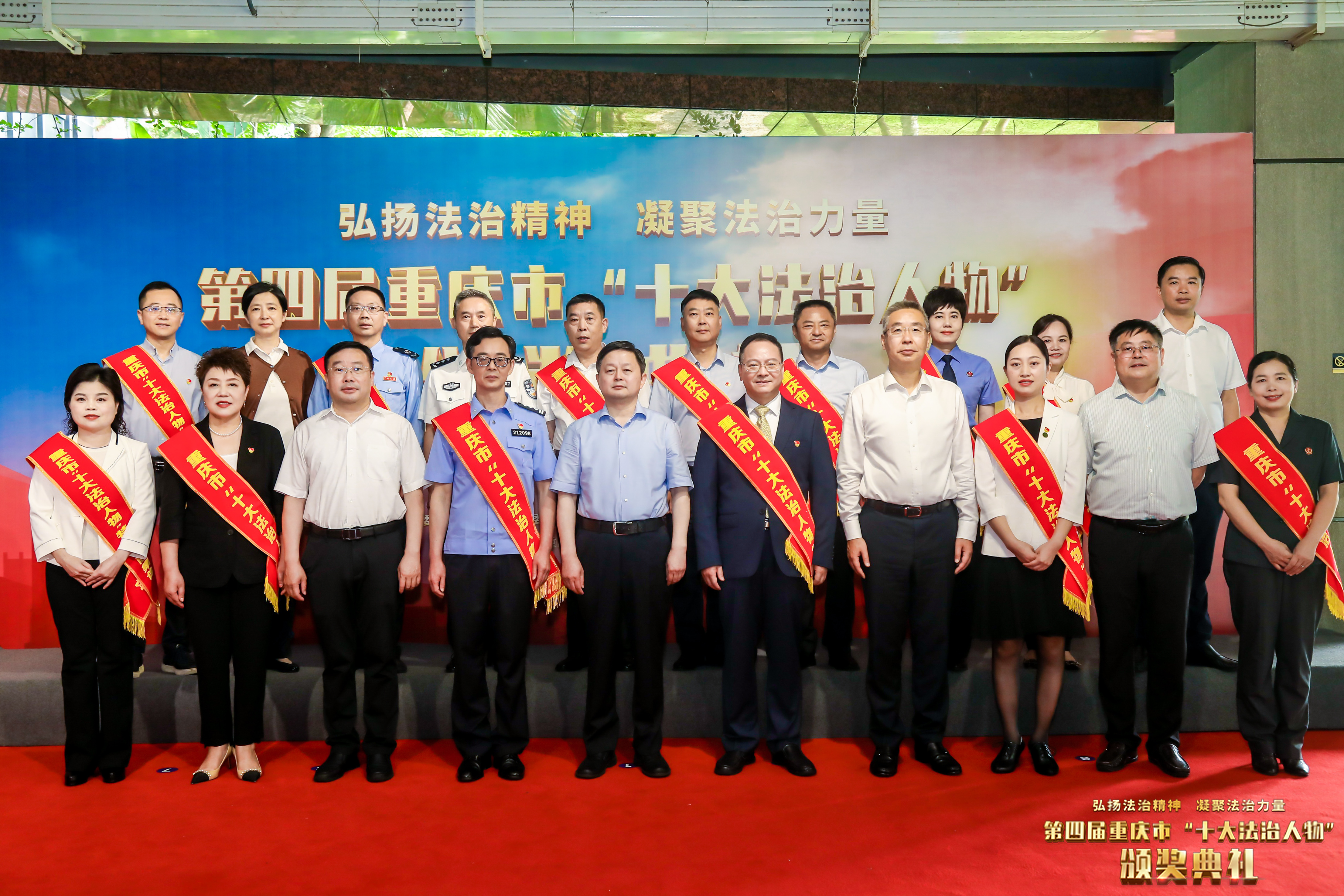 本网讯(记者 唐孝忠)今(30)日上午,中共重庆市委宣传部、中共重庆市委网络安全和信息化委员会办公室、中共重庆市委全面依法治市委员会办公室、重庆市司法局、重庆市普法工作办公室在重庆重视传媒总部基地联合举办“弘扬宪法精神、凝聚法治力量”——第四届重庆市“十大法治人物”颁奖典礼。市人大常委会、市委依法治市办、市委全面依法治市委员会守法普法协调小组成员单位相关负责人及联络员,重庆法院、检察院、公安、司法行政系统代表,部分市级单位、企业、青少年学生、基层群众代表等共150余人参加颁奖典礼。
