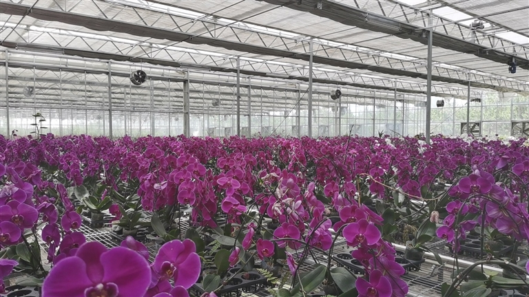 (甘南县兴十四村,林中即将成熟的松茸、绿色大棚里破土而出的灵芝,以及四季均能培育的绿色盆栽和蝴蝶兰等花卉。)